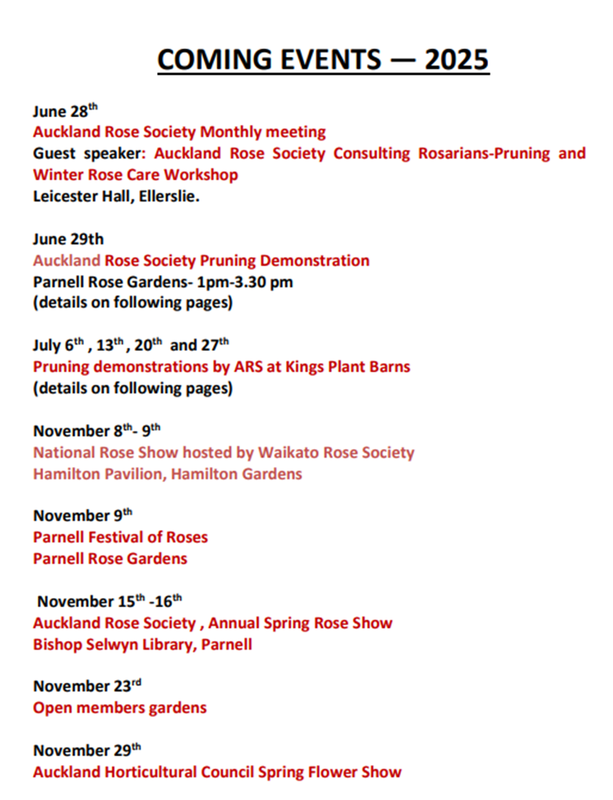 As one of Auckland’s leading Consulting Rosarian’s, Max wrote the cultural notes for the Auckland Rose Society Magazine for more than 25 years and also currently supplies Cultural Notes to the Franklin District Rose Society for use in the Franklin magazine as well. We have lost count of the pruning, grafting and rose culture presentations Max has performed over the last couple of decades, both for Auckland members as well as for the public, and he is always happy to help new people with their rose questions, offer advice and simply visit gardens to help out with any rose problems they may have. Each year he has helped to prune members’ roses and prune for members of the public. Many a donation has been received by the Society on the back of his annual endeavours over the last few decades.