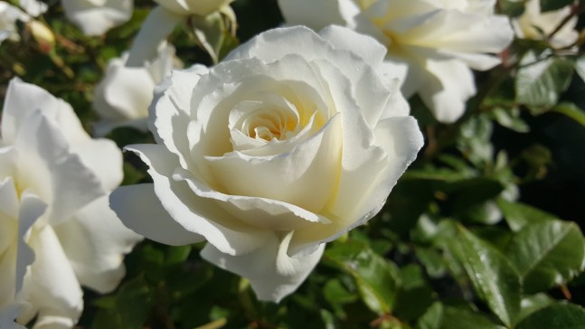 There are plenty of white floribundas besides ‘Iceberg’ and Margaret Merril’. One of my favourites is ‘The Wedding Rose’ which is a low growing variety with masses of old fashioned style white blooms. ‘Scott Base’ is a new variety with fragrant white blooms and ‘Jack Frost’, also new, is exceptionally healthy.